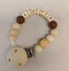 Die Kette besteht aus Holzclip, Holzbuchstaben und Silikonperlen . Befestigung des Schnuller ganz einfach mit Schlaufe oder Silikonring.